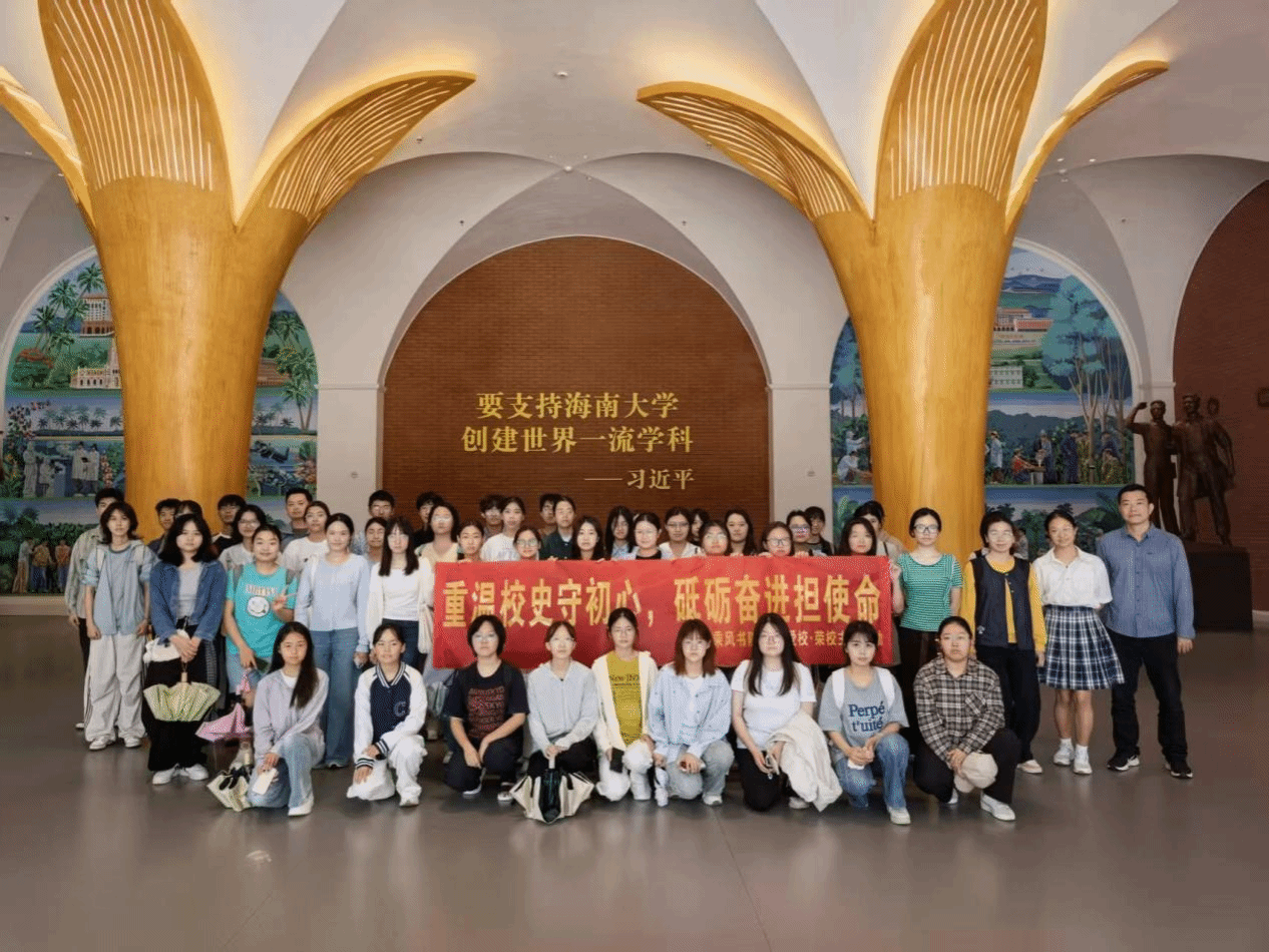 在讲解员的细致引导与生动讲解下,同学们认真聆听、驻足沉思,先后走进“光辉历程、时代新篇、历史跨越、展望未来”四大展区。从建校之初“草房上马、荒滩起家”的艰难求索,到如今跻身世界一流学科建设高校的蓬勃发展;从老一辈教育工作者扎根南疆、攻坚克难、攻克植胶难题的执着坚守,到学校在科研领域屡获国家级成果、助力地方高质量发展的辉煌成就,一幅幅珍贵影像、一件件历史实物、一段段翔实史料,不仅生动展现了学校的发展变迁与奋斗历程,更深刻诠释了“丹心耀南疆”的海大精神真谛,让学子们在回望校史中进一步增强了归属感、自豪感与责任感。